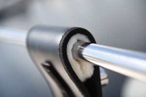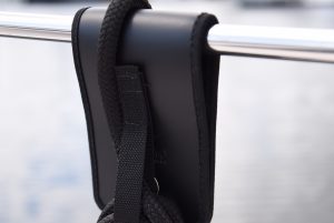 The Fender Hook is installed in a convenient wrap around manner that uses hook & loop to close and secure it around the piping or handrail. Using our proprietary non-slip material, ShoreGrip® the fender hook will remain in place on the railings. For those who have a wood handrail, we can substitute the ShoreGrip® with our sheepskin.